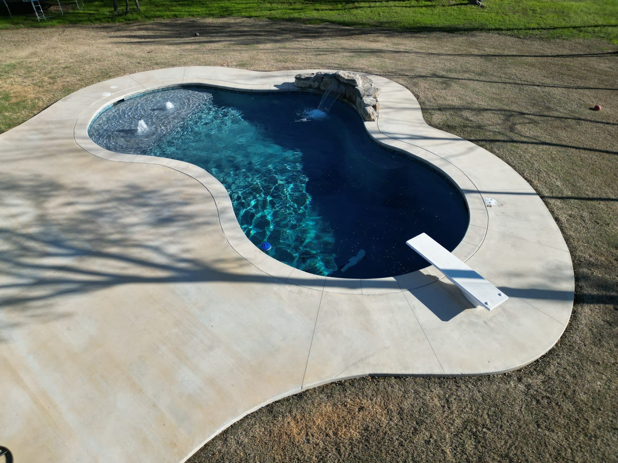 Built in Jenks, Oklahoma, the McClendon Natural Escape pool combines fun and function with its natural design. The rock wall gives the feeling of a hidden getaway, while the diving board adds an element of entertainment. This pool integrates seamlessly into its environment, adding value and charm to the property.